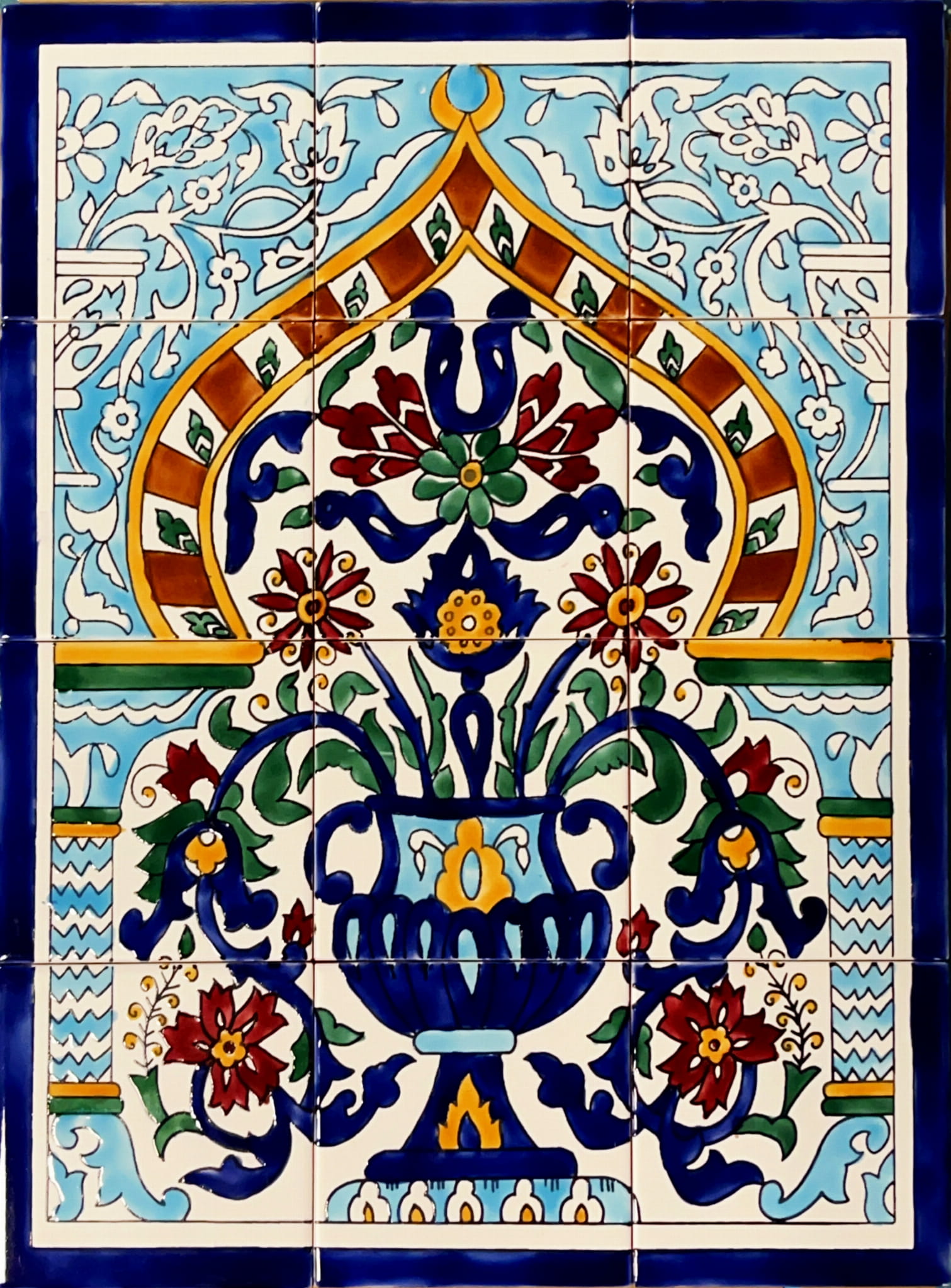 PRZEPIĘKNY ORYGINALNY ZESTAW 12 ARABSKICH KAFLI SKŁADAJĄCYCH SIĘ NA JEDEN ORIENTALNY WZÓR.