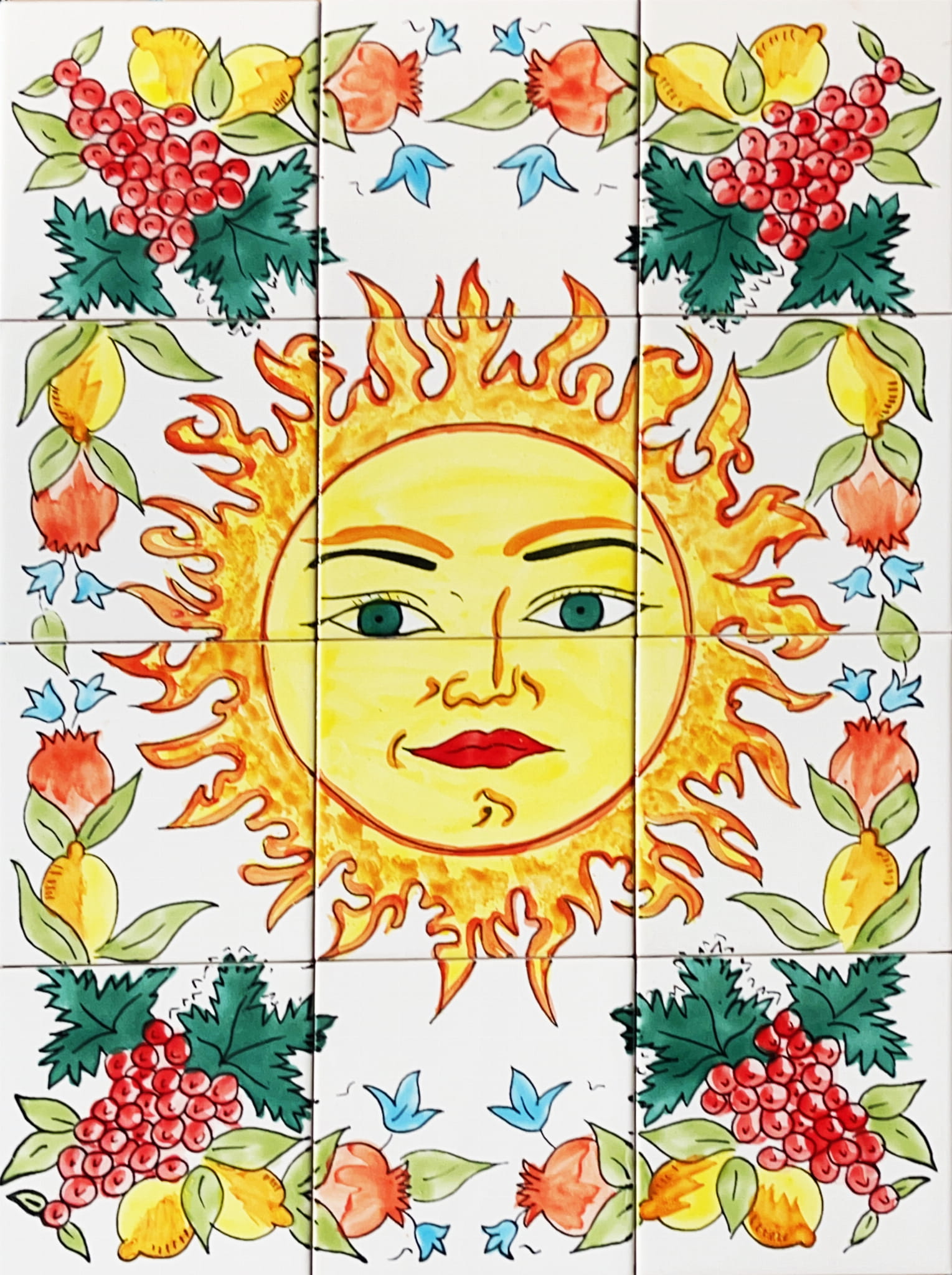 PRZEPIĘKNY ORYGINALNY ZESTAW 12 ARABSKICH KAFLI SKŁADAJĄCYCH SIĘ NA JEDEN ORIENTALNY WZÓR.