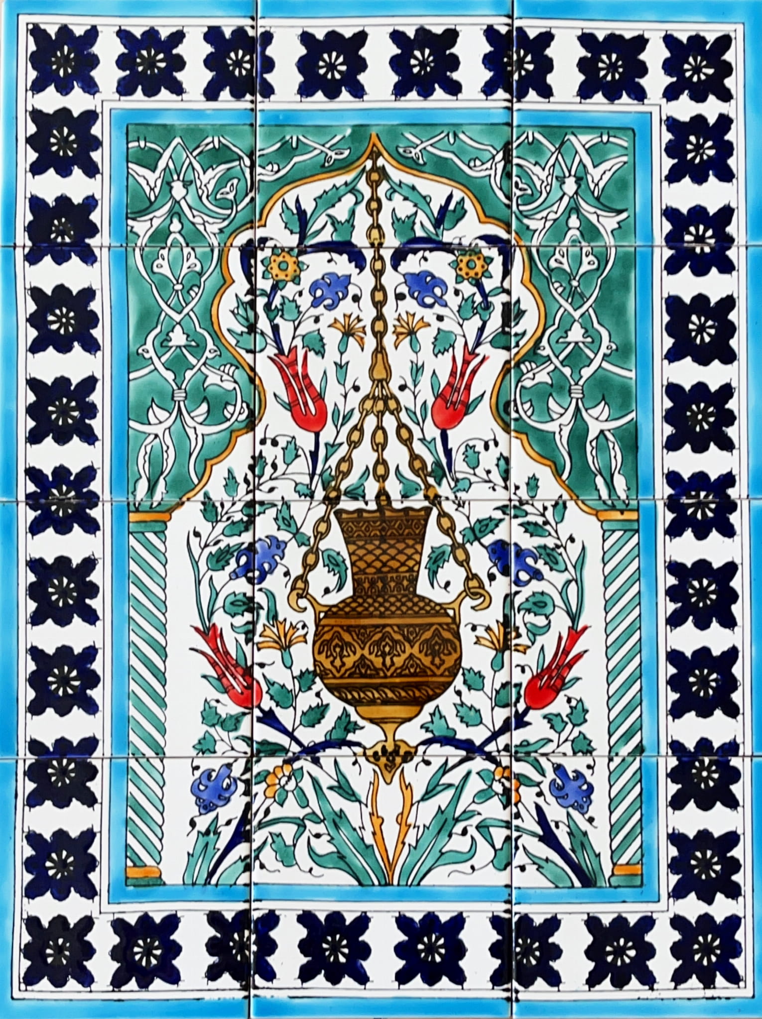 PRZEPIĘKNY ORYGINALNY ZESTAW 12 ARABSKICH KAFLI SKŁADAJĄCYCH SIĘ NA JEDEN ORIENTALNY WZÓR.
