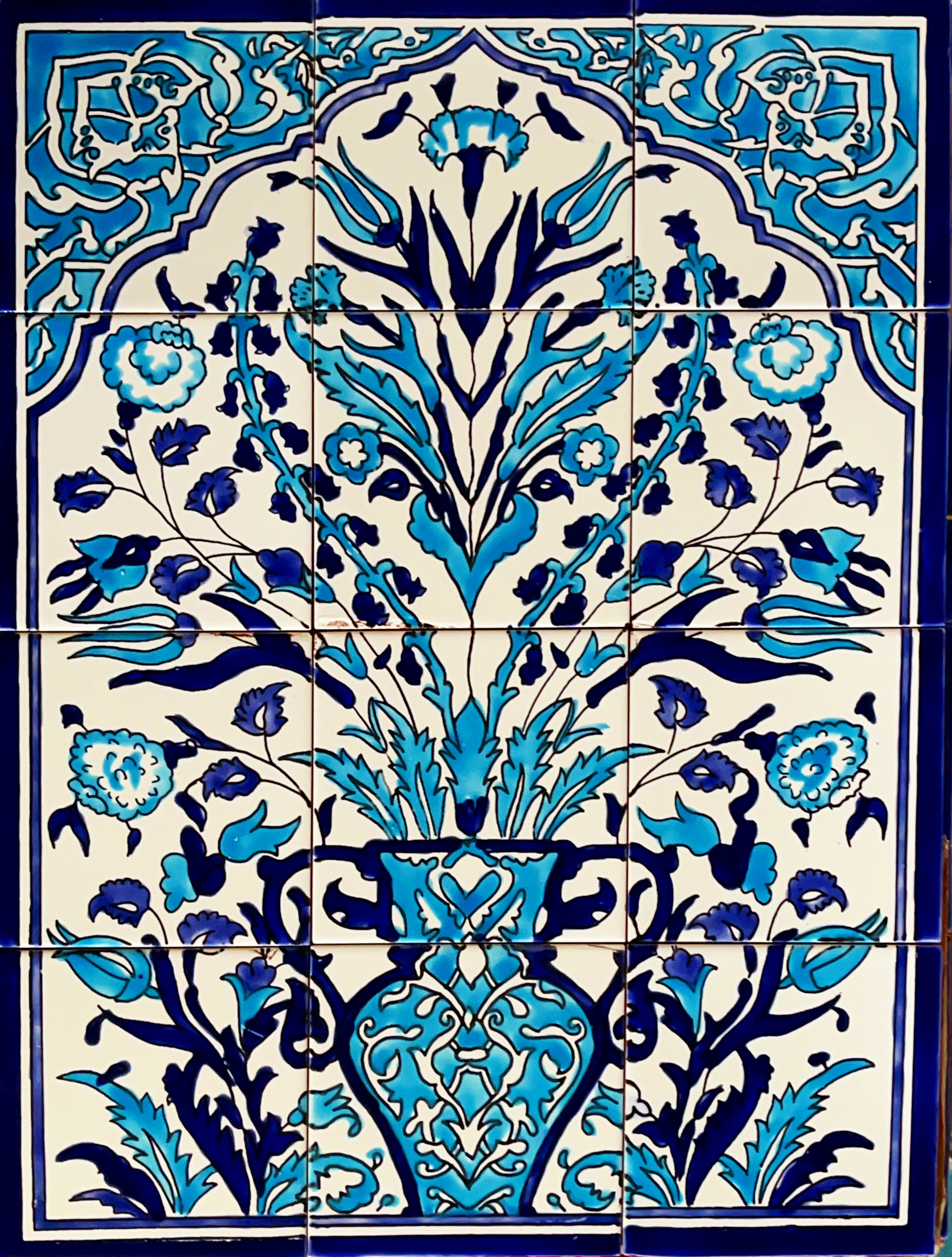 PRZEPIĘKNY ORYGINALNY ZESTAW 12 ARABSKICH KAFLI SKŁADAJĄCYCH SIĘ NA JEDEN ORIENTALNY WZÓR.