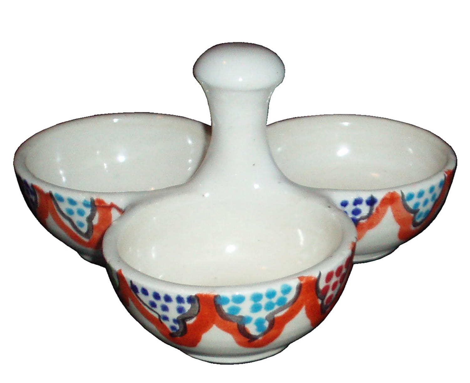 Potrójny zestaw do serwowania stworzony został jako naczynie ceramiczne do podawania przypraw, dipów, dodatków. Zestaw taki pozwala na miksowanie przypraw czy dipów, pozwala mieszać smaki, tworzyć samemu kulinarne cuda.